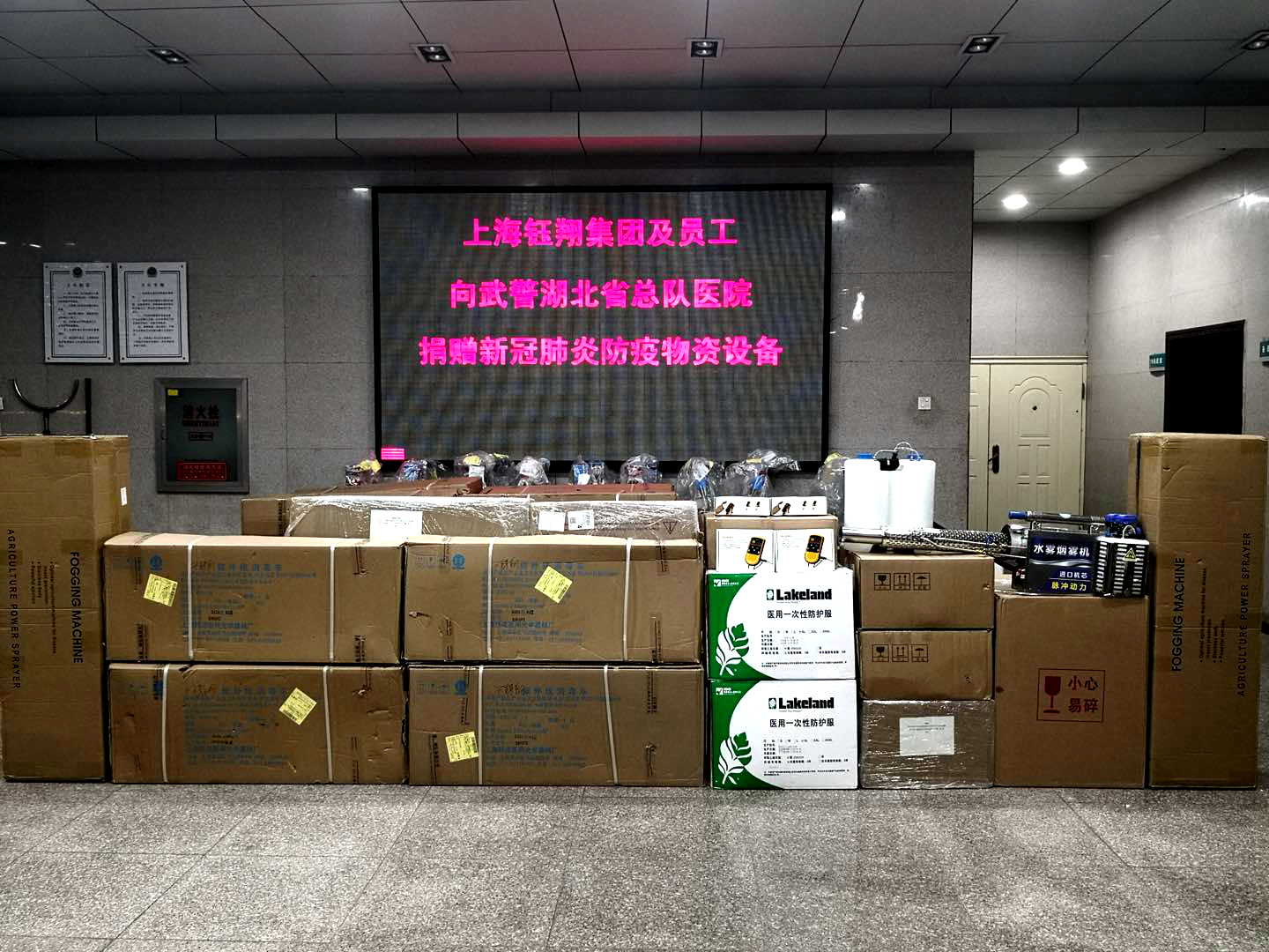 2月24日,鈺翔控股集團(tuán)員工及企業(yè)捐款80萬元購買的第二批抗疫醫(yī)療物資送達(dá)武警湖北省總隊醫(yī)院,此批物資包括熱成像人體測溫系統(tǒng)、便攜式數(shù)字X光機(jī)、掌式脈搏血氧飽和度儀、電動噴煙器、紫外線消毒車、電動超低容量噴霧器及防護(hù)服等。