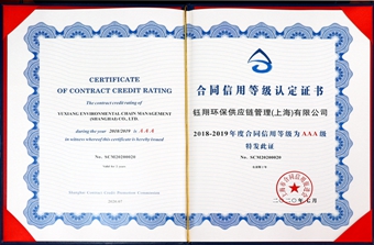 日前,鈺翔控股集團(tuán)旗下鈺翔環(huán)保供應(yīng)鏈管理(上海)有限公司、上海久源經(jīng)貿(mào)發(fā)展有限公司被評為“2018-2019年度上海市守合同重信用企業(yè)”,并榮獲AAA級合同信用等級認(rèn)定。